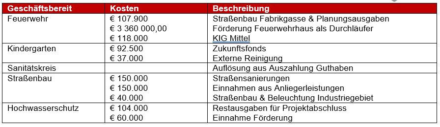 Im Zuge der Fortführung der Haushaltskonsolidierung bleiben die Vereinsförderungen vorerst wie 2025 sowie das gedeckelte Feuerwehrbudget. Der Gemeinderat beschließt die Höhe der Vereinsförderungen sowie das Feuerwehrbudget.