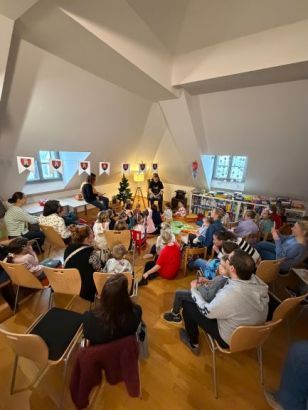 Großer Andrang herrschte wieder im Dachgeschoss des Forsthauses bei der letzten Lesung des Jahres vor der Weihnachtspause in unserer Bücherei Hornstein: Bis auf den letzten Platz gefüllt, erlebten Kinder und ihre Begleitpersonen einen stimmungsvollen Vormittag ganz im Zeichen der Vorweihnachtszeit.
